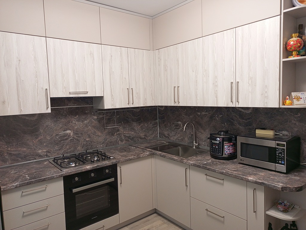 Кухня получилась замечательно, изготовлена из современных, надёжных и прочных материалов, причем в других фирмах такой же материал, гораздо дороже (проверяла сама).